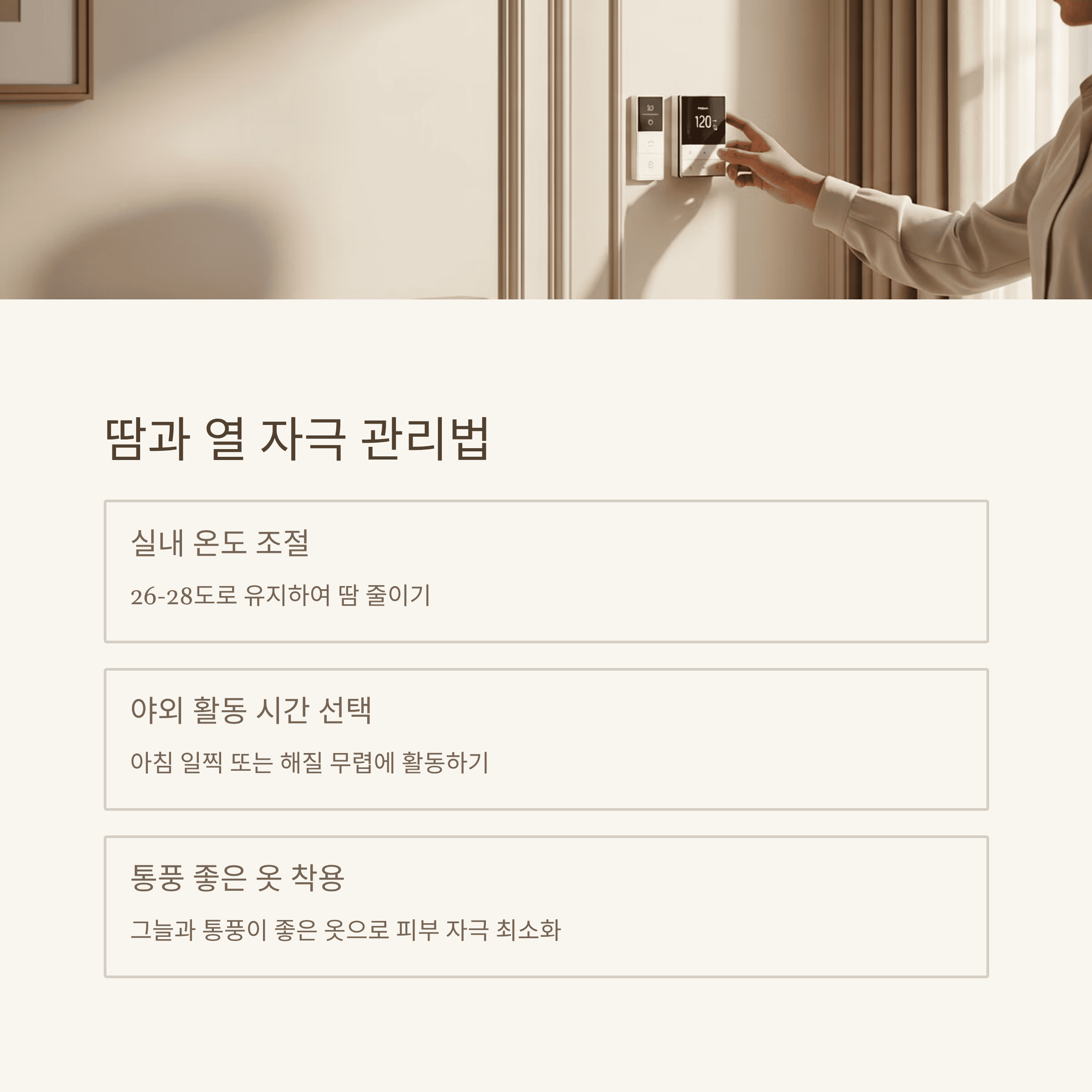 집 안·외출 시 환경 조절과 소재 선택 팁