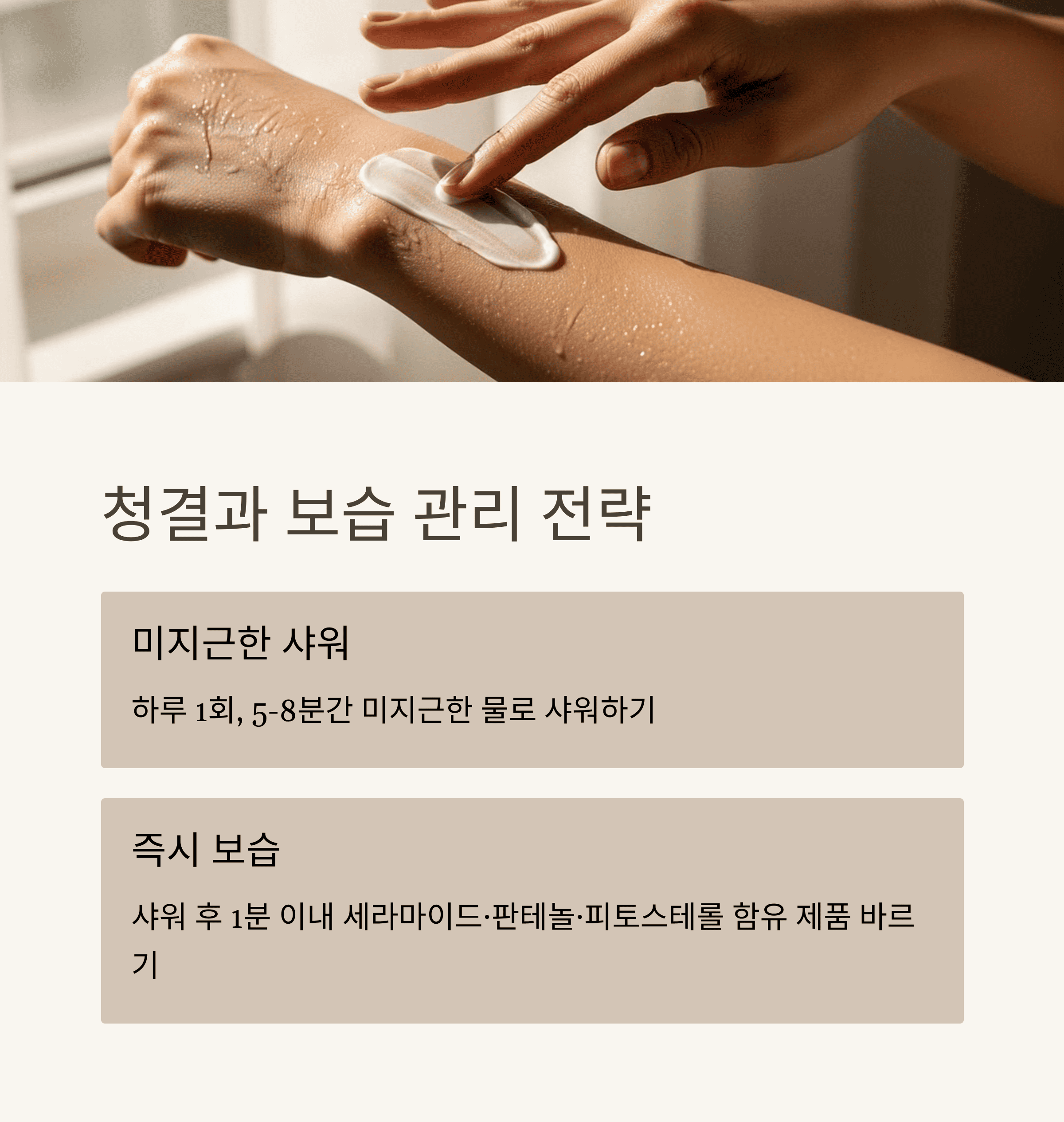 미지근한 샤워와 즉시 보습 필수